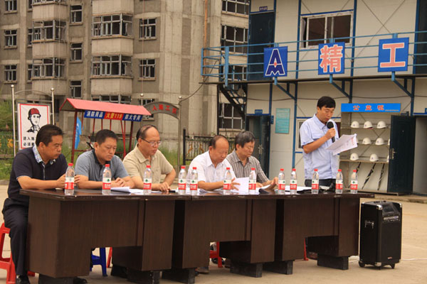 誓師動(dòng)員會(huì)上由項(xiàng)目部關(guān)翔飛宣讀了鳳凰城A組團(tuán)項(xiàng)目C區(qū)二標(biāo)段工程施工“百日會(huì)戰(zhàn)”實(shí)施方案。為確保“百日會(huì)戰(zhàn)”的工作取得實(shí)效,集團(tuán)決定對(duì)百日會(huì)戰(zhàn)的實(shí)施過(guò)程及結(jié)果進(jìn)行驗(yàn)收和評(píng)價(jià)。屆時(shí)將對(duì)有功人員表彰和重獎(jiǎng)。將對(duì)有過(guò)人員進(jìn)行問(wèn)責(zé)和處罰。要求全體干部職工,以高度的責(zé)任心和使命感,以確保工期質(zhì)量安全,打造精品工程為宗旨;造福百姓奉獻(xiàn)社會(huì),為牡丹江市的保障性住房建設(shè)貢獻(xiàn)力量。