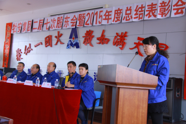 4月8日,在公司六樓會(huì)議室召開了集團(tuán)公司二屆七次股東會(huì)暨2015年度總結(jié)表彰大會(huì)。會(huì)議由集團(tuán)公司黨委副書記、副總經(jīng)理王偉主持。集團(tuán)公司黨委書記、董事長、總經(jīng)理張秋向股東會(huì)做2015年度的工作報(bào)告,報(bào)告總結(jié)了公司一年來取得的成績和獲得的各項(xiàng)榮譽(yù),指出工作中存在的問題和不足,并在2016年的工作部署中提出新的目標(biāo)及要求。大會(huì)對2015年度的先優(yōu)模范和先優(yōu)單位進(jìn)行了表彰。集團(tuán)公司新任領(lǐng)導(dǎo)班子成員向股東會(huì)作出了履職承諾。會(huì)后辦公室將報(bào)告印發(fā)至集團(tuán)下屬各單位、各部門,要求各級(jí)管理人員認(rèn)真學(xué)習(xí)領(lǐng)會(huì)報(bào)告精髓、認(rèn)準(zhǔn)工作目標(biāo)、準(zhǔn)確把握工作方向。務(wù)實(shí)工作,實(shí)現(xiàn)年度工作目標(biāo)。