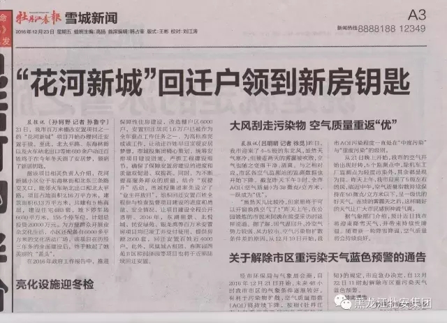 據(jù)該項目負責人關祥飛經(jīng)理介紹,花河新城小區(qū)位于東海林街和北東三條路交叉口,毗鄰火車站北出口和北太平路,項目占地面積2.16萬平方米,建筑面積6.13萬平方米,共建有5棟高層,建設住宅683套,地下停車場6600平方米,155個停車位,計劃總投資20000萬元。為方便群眾開展業(yè)余文化生活,小區(qū)還配備有6000多平方米的文化活動廣場。推進保障性住房建設,安置回遷居民已被作為2016年全市重點工作任務之一,為高標準完成任務,讓動遷百姓早日實現(xiàn)安居夢想,項目部精心策劃,統(tǒng)籌安全建設進度,嚴抓工程建設的細節(jié),確保了保障安置房建設的進度和質量雙促進、雙提高。用“花河”速度創(chuàng)造了當年施工、當年竣工驗收交付使用的牡丹江建筑行業(yè)的奇跡,有力地證明了“牡安集團”是一支拉得出、叫得響、作風硬、能戰(zhàn)斗、能打勝仗的建筑業(yè)鐵軍”。